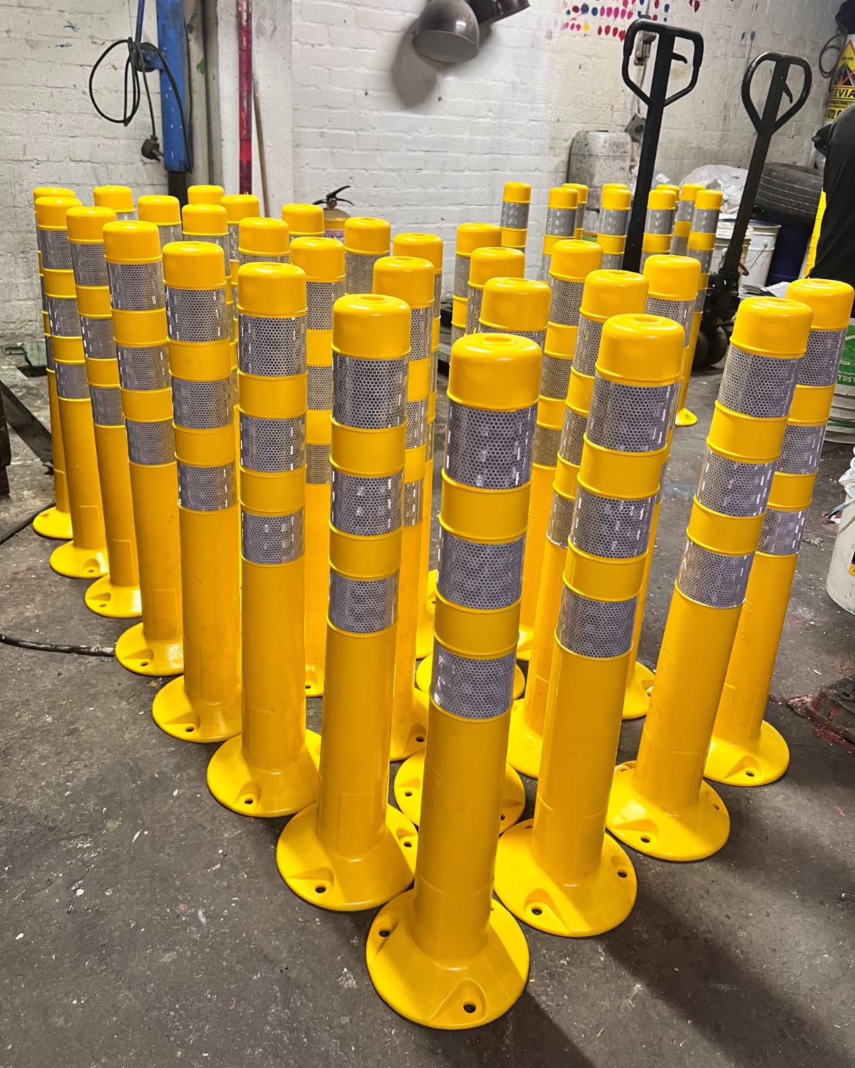 Fabricado en PVC flexible de alto rendimiento, con excelente memoria de forma tras impactos. Diseñado para mejorar la visibilidad y seguridad en zonas de bifurcación, carriles de prohibido adelantar, ciclorutas y delimitaciones viales. Cuenta con tres franjas reflectivas de alta intensidad que garantizan visibilidad tanto de día como de noche.